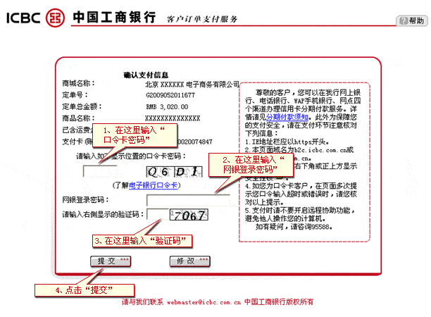 如您已在商戶網站選購完畢,請使用工商銀行網上支付進行付款(本頁面僅供演示之用)。