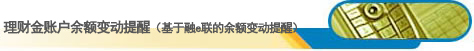無論存款取款、轉賬匯款、刷卡消費還是投資理財,只要賬戶資金髮生變動,您就能在第一時間收到基於融e聯的餘額變動提醒。